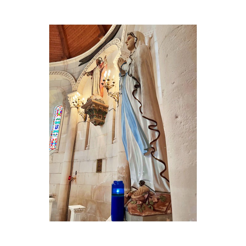 J'écrirais votre nom sur votre bougie et je ferais une photo de celle-ci dans l'église. Ensuite je vous enverrais la photo de votre bougie allumée par mail. Traditionnellement nous la déposons dans le coeur de l'église au pied de Notre Dame de Lourdes juste à coté de la Présence Réelle de Notre Seigneur Jésus-Christ.