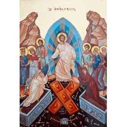 Icône du Christ Ressuscité Une très belle icône de la Ressurection. Cette icône est la copie d'une authentique icône Bizantine. Elle est fabriquée artisanalement à la main, dorée à la feuille d'or. Elle est livrée avec un certificat d'authenticité.