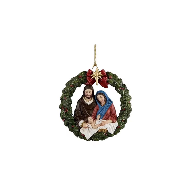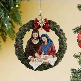 Apportez une touche sacrée et spirituelle à votre sapin avec cette magnifique suspension représentant la Nativité. Jésus, Marie et Joseph sont délicatement mis en scène dans cette décoration empreinte de foi, symbole de l’amour divin et de l’espérance.