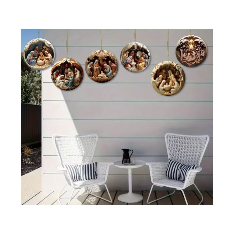 Coffret de 6 suspensions d'ornement illustrant la scène de nativité
