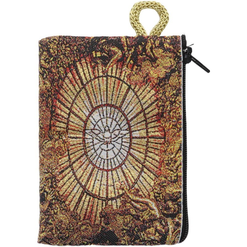 Porte monnaie en tissus, brodé de fil couleur or, avec fermeture éclair.