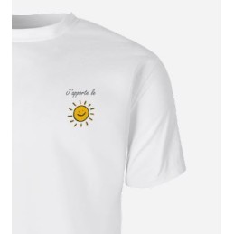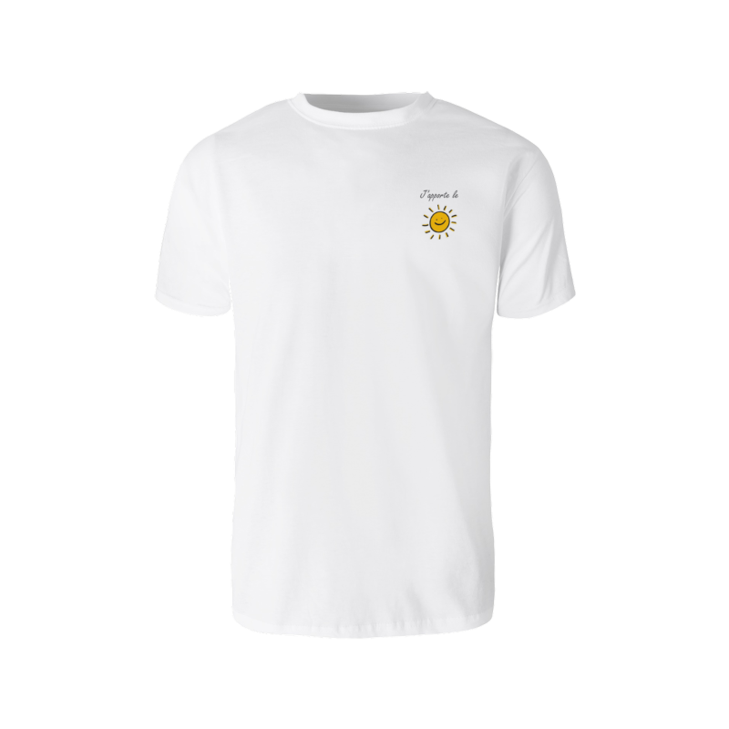 L’origine de ce T-shirt : Je suis en mission d’évangélisation en Guadeloupe. Je demande à mes amis et ma famille en métropole : que puis-je vous ramener pour vous faire plaisir ? La réponse est unanime : « apporte-nous du SOLEIL ! » J’ai cherché partout des T-shirts avec un soleil, impossible à trouver... D’où l’idée d’en faire faire un. En effet, il y a beaucoup de raisons spirituelles à cela :
